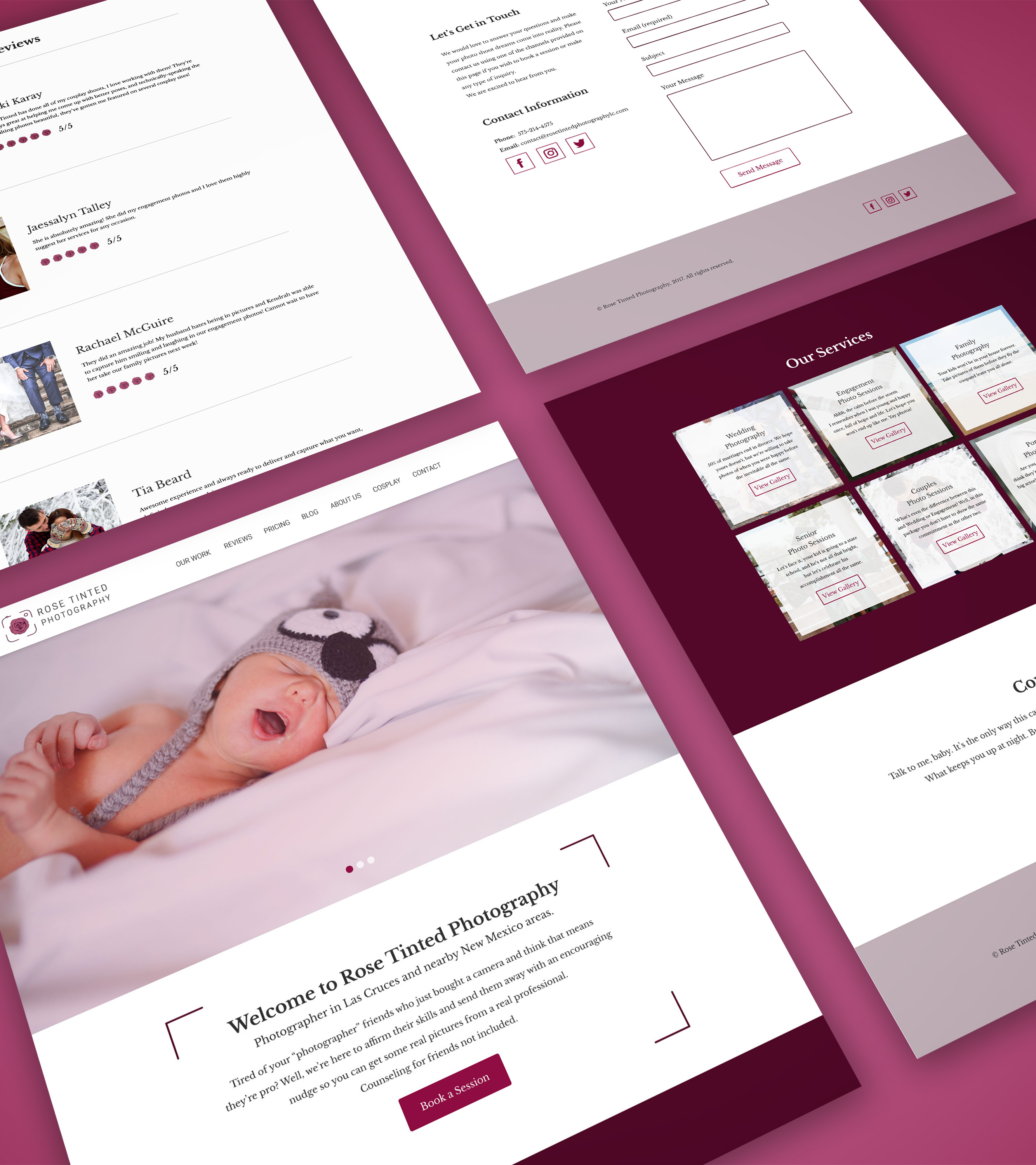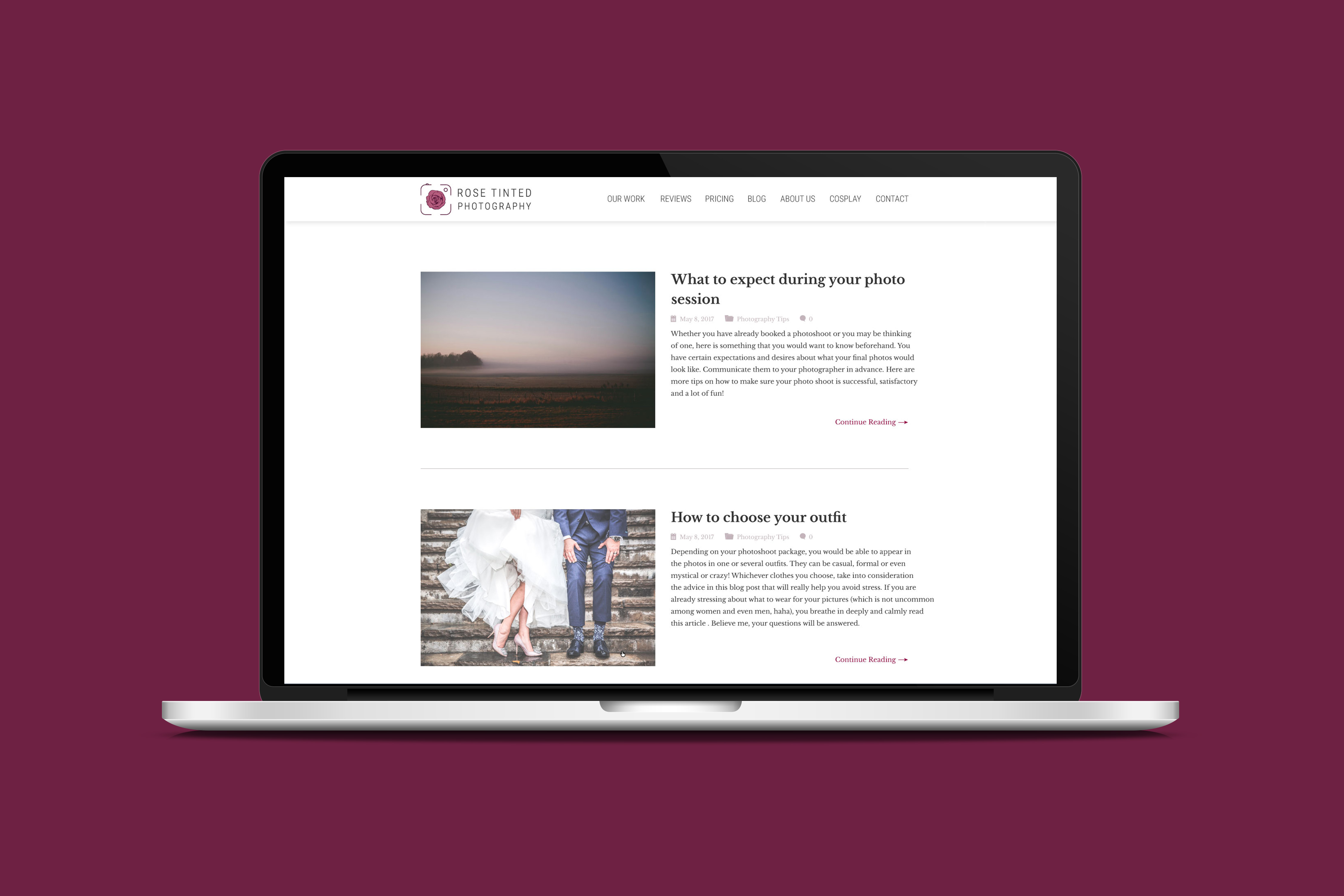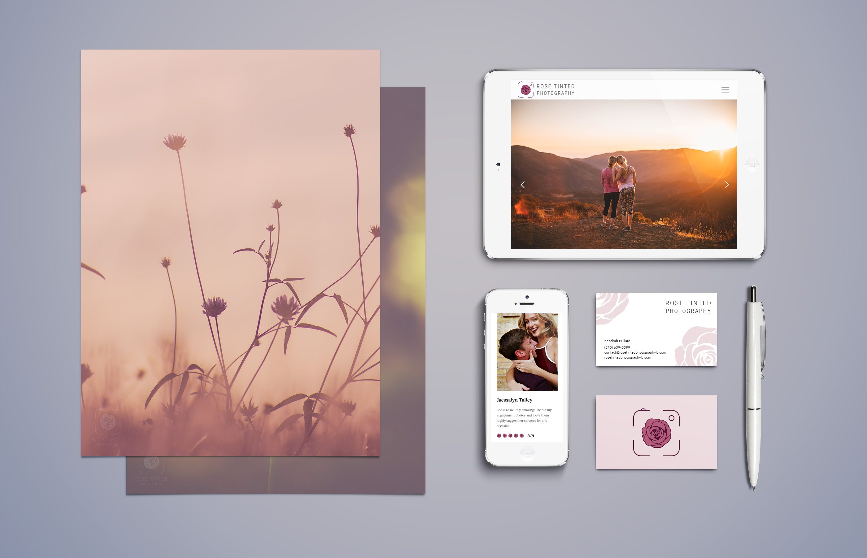 Rose Tinted Photography is the brand name of a local photographer Kendrah who specializes in family, couple, and cosplay shots. She works with her husband and displays great passion for bringing cool concepts into reality in her photographs. Kendrah needed a new look for her business that would display its unique identity.